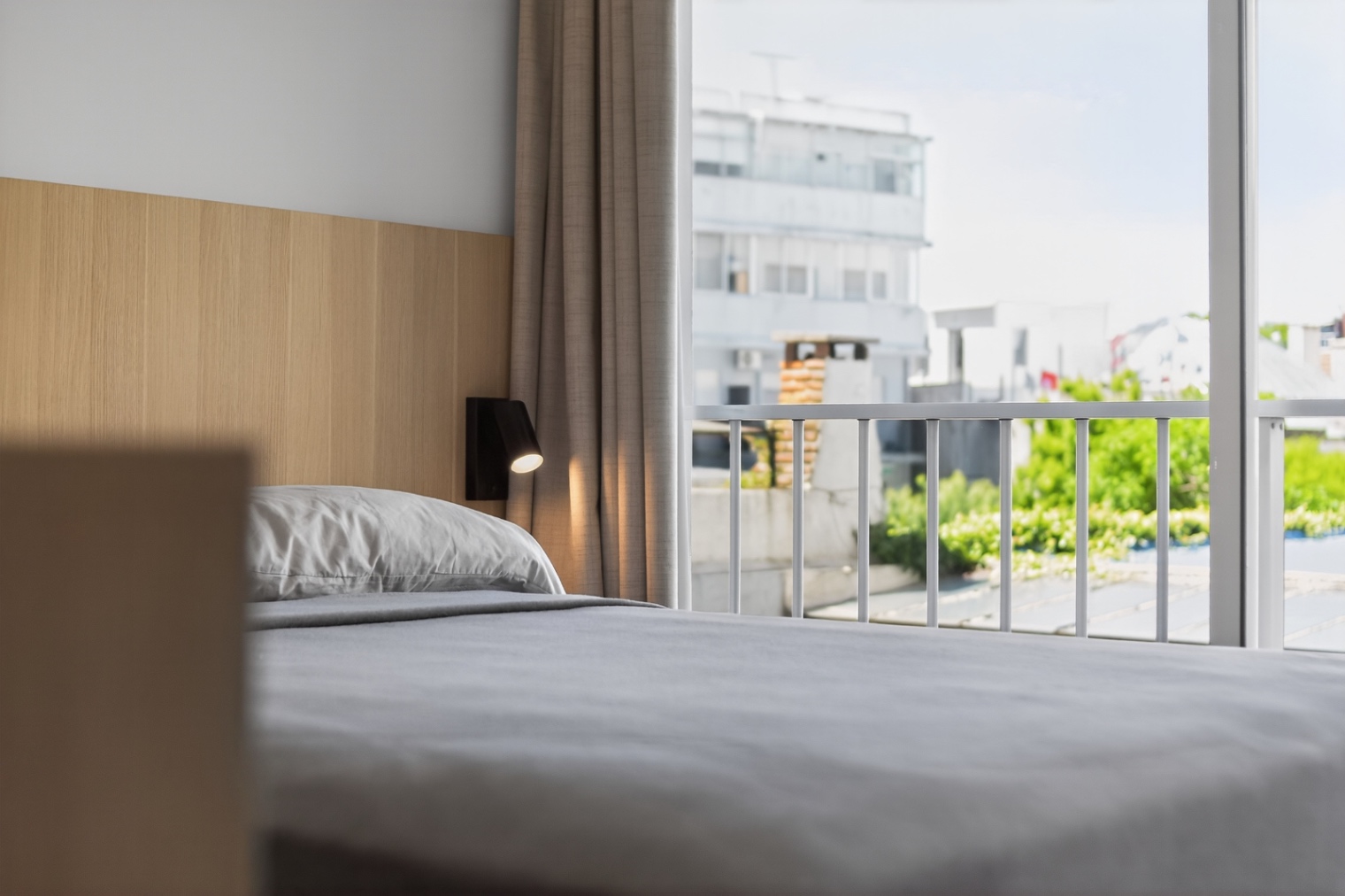 .El ambiente fue sectorizado mediante mobiliario en melamina de 18 mm, generando estanterías y almacenamiento sin obstruir la iluminación natural hacia el área de estar.